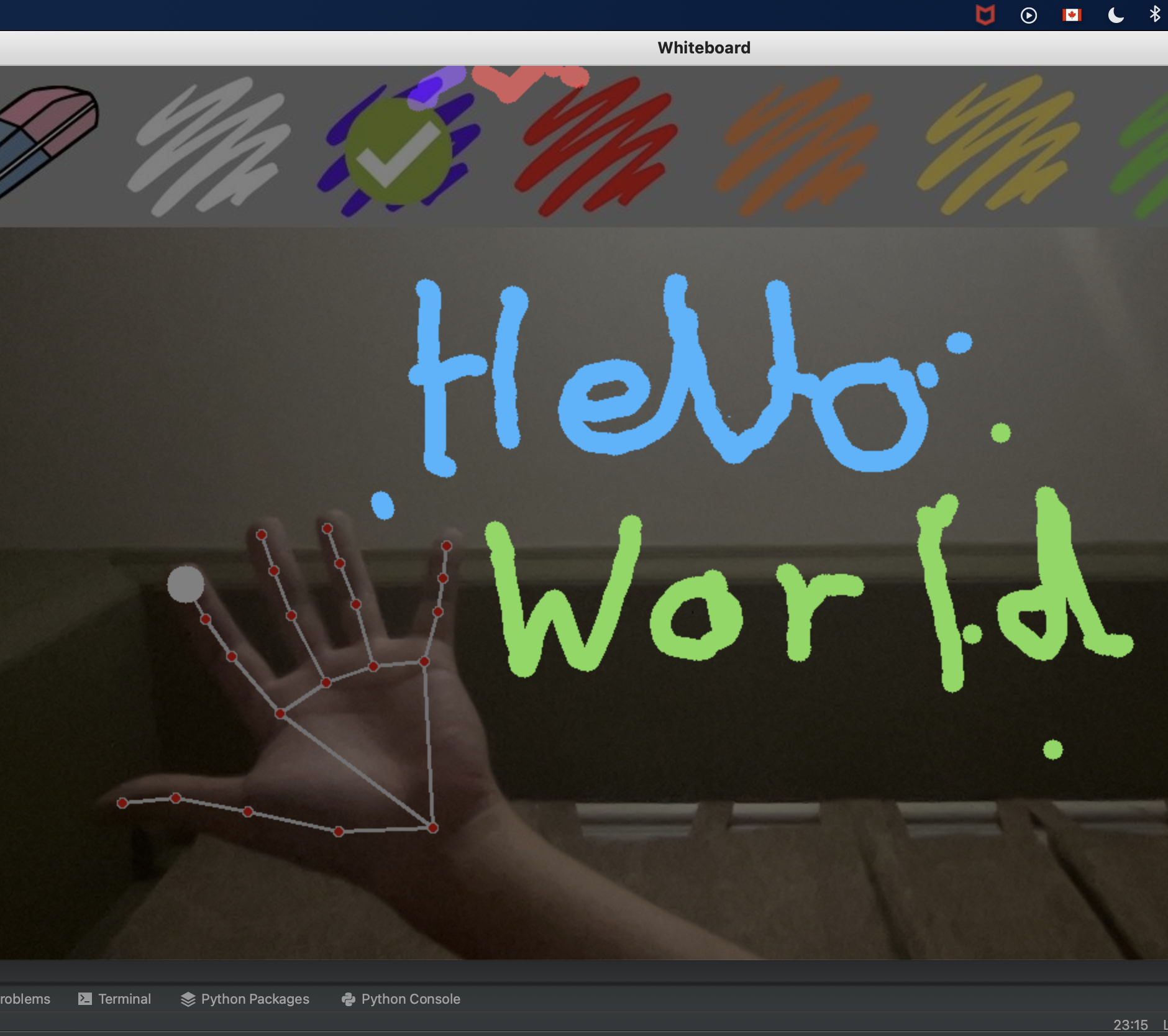Developed an interactive virtual whiteboard leveraging computer vision to enable users to draw and erase mid-air using hand gestures.
